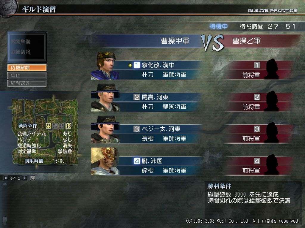 30分待っても来ないので、仕方なく立て直そうと思ったらギルド演習を選ぶと即落ちの罠・・・。