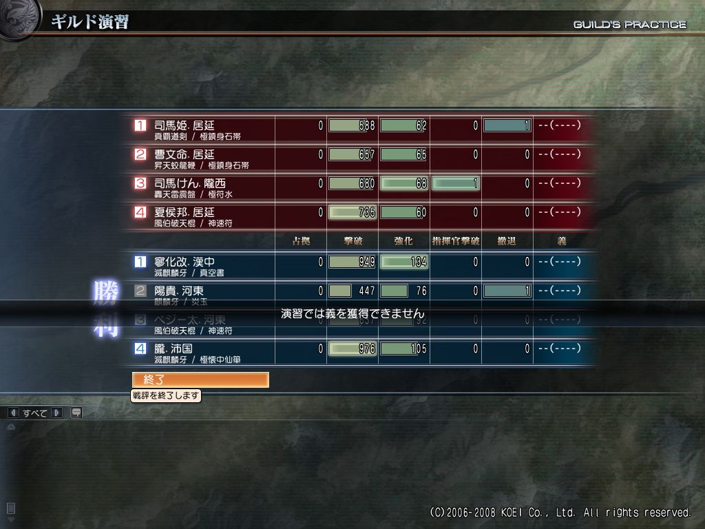 何気に夏侯邦が一番狩ってるwてかアイテム自重w