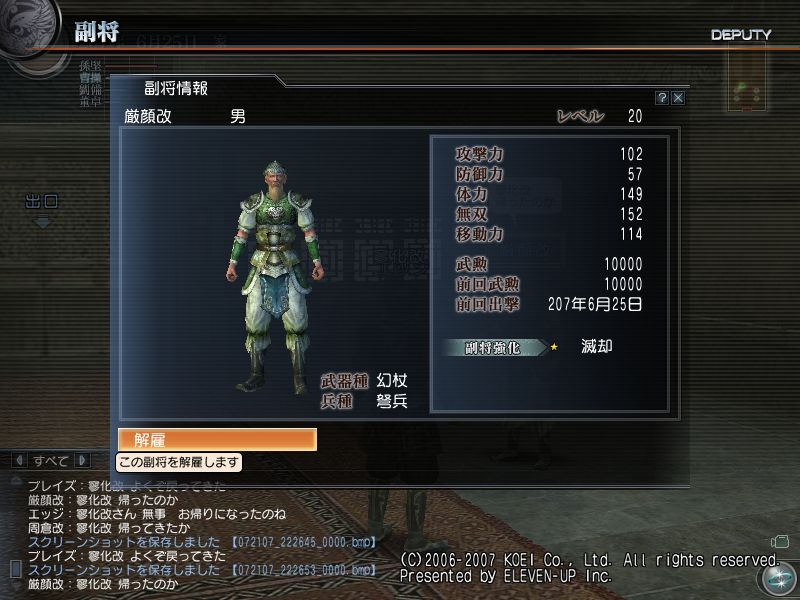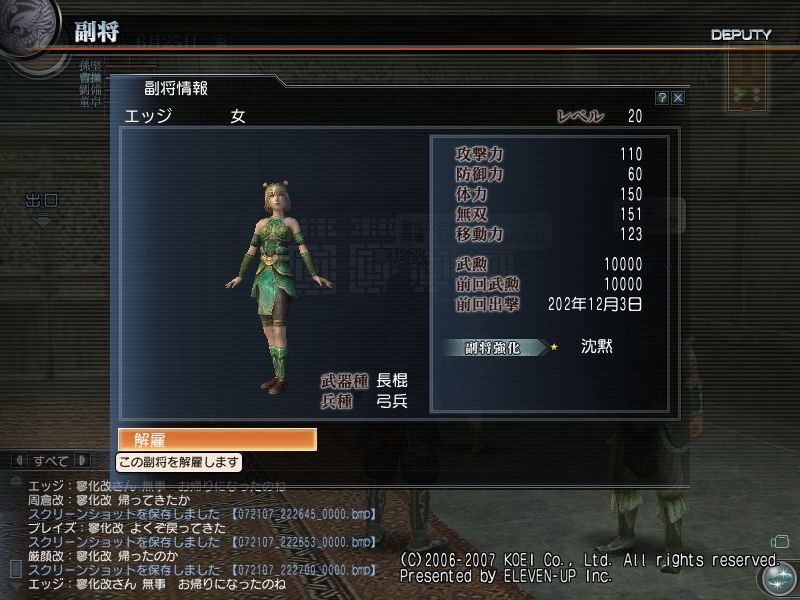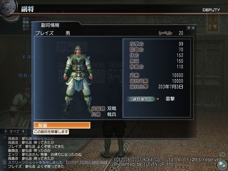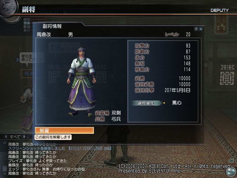 ついでに、下のログ見れば分かるが新たな副将、周倉改が仲間になりました。